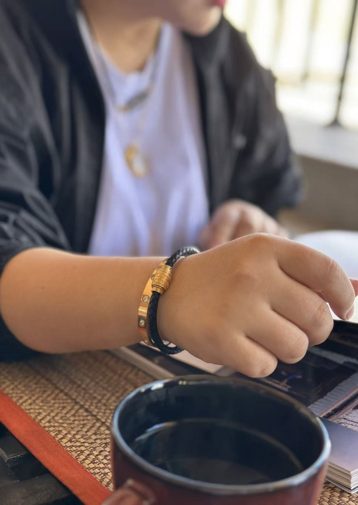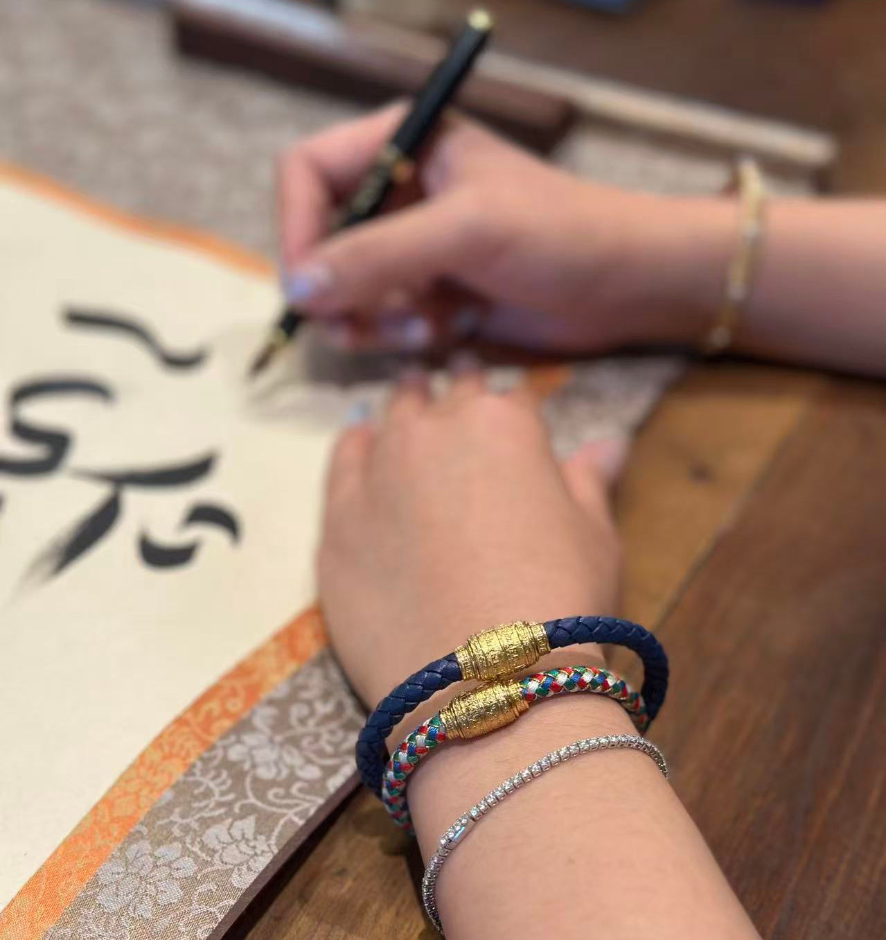Crafted with Hermès grade full grain leather, Spain’s signature Dragon Weave cord, and gold vacuum plated mantra barrels uniting timeless craftsmanship and refined precision.