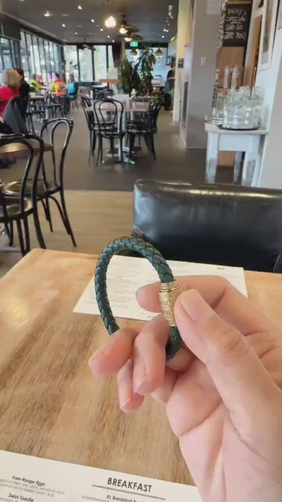 Crafted with Hermès grade full grain leather, Spain’s signature Dragon Weave cord, and gold vacuum plated mantra barrels uniting timeless craftsmanship and refined precision.