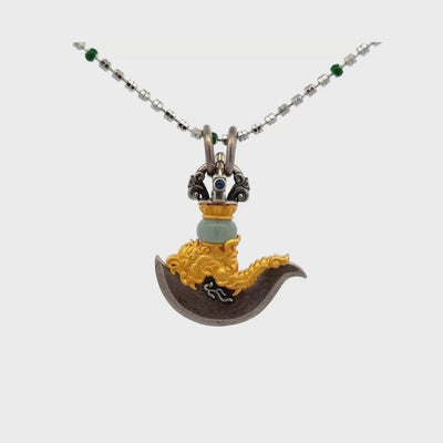 Henrrison LCP1459 · Phurba Nature Jade Sacred 925 Silver Pendant · Gilded 22K Genuine Gold Finish