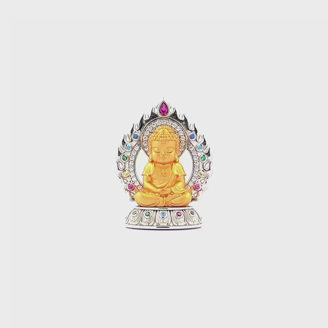 Henrrison LCP1844-1851 ·Flaming Lotus Eight Baby Guardian Deities Sacred 925 Silver Pendant-Amitābha ·Guardian Deity for the Pig and Dog Zodiac · Gilded 22K Genuine Gold Finish