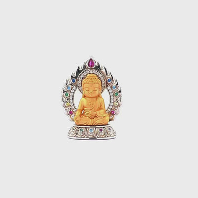 Henrrison LCP1844-1851 ·Flaming Lotus Eight Baby Guardian Deities Sacred 925 Silver Pendant-Vairocana ·Guardian Deity for the Goat and Monkey Zodiac · Gilded 22K Genuine Gold Finish